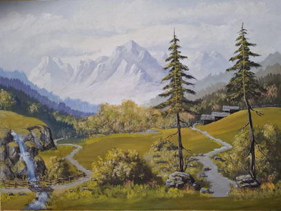 Dieses Landschafts- bzw. Hintergrundbild ist ein Werk von Walter Grach aus Innsbruck und wurde dem Krippenmuseum Kemeten geschenkt.